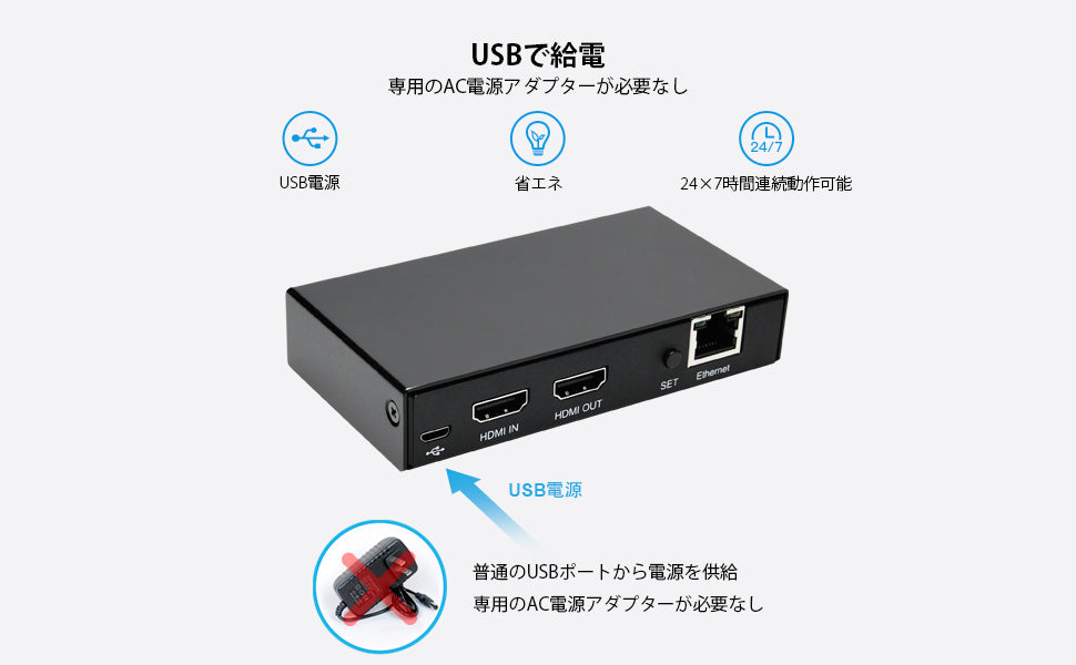 • 通常のUSBポートで給電