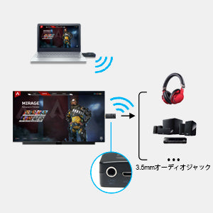 WHE-10はHDMI LPCMオーディオに対応し、レシーバーユニットは3.5mmオーディオポートを介してHDMIソースからデジタルオーディオを抽出することもできます。これにより、外部サウンドバーまたはその他の3.5mmオーディオ機器に接続してオーディオ体験を向上させることができます。